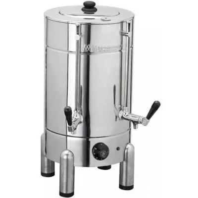 Corpo em aço inoxidável 430 e depósito em aço inoxidável 304. Deve-se colocar o pó no coador apropriado para a cafeteira, em seguida a água já fervida e quente para o preparo do café. Apresenta 02 torneiras: sendo uma para retirada da água que fica na caldeira, para manter quente o café, a outra para servir o café. Resistência tubular e termostato de bulbo regulável. Esse equipamento pode ser servido o alimento desejado como: leite ou chá... Acompanha coador de pano e vareta para limpeza das torneiras. Torneiras de alavanca com cartucho VSP. Pés de alumínio fundido e sapatas anti-derrapantes. Características: Cafeteira de 4 litros Medidas: 370 X 300 X 530 Alimentação: 110V / 220V Potencia 1.3000W Consumo: 1,3 kW/h