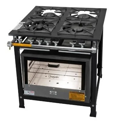 Estrutura fabricada em aço galvanizado com pintura eletrostática à pó na cor preto Bandeja coletora de resíduos 4 queimadores, sendo 1 Triplo, 1 duplo e 2 simples em ferro fundido opção baixa pressão 4 queimadores VULCANO na opção alta pressão. Grelhas no tamanho 30x30 em ferro fundido Registros em aluminio Baixa pressão Montagem e regulagem por conta do comprador Dimensões aproximadas do Fogão (LxAxP): 0,80 x 0,78 x 0,78 cm Dimensões aproximadas do Forno (LxAxP): 0,52 x 0,30 x 0,58 cm