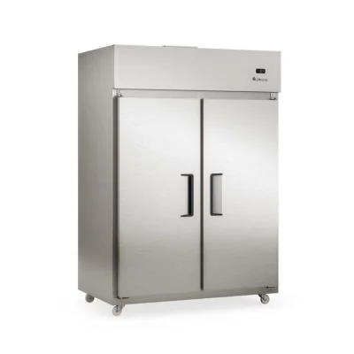 Refrigerador Comercial 2 Portas Conservação e Exposição de produtos em cozinhas industriais de hotéis, restaurantes, clubes, bares, lanchonetes, confeitarias, mercados, mercearias e outros Refrigeração: Ar forçado com evaporador aletado Temperatura: 0 a +7C Degelo: Manual Controlador eletrônico com indicador de temperaturaRA Revestimento Interno: Aço Inox 304 Revestimento Externo: (frente e laterais): Aço Revestido com Película Tipo Inox Portas: Cegas Fechamento automático Portas verticais com sistema de trava Parte Frontal sem resistência no quadro de portas, podendo ocorrer condensação da umidade do ar Prateleiras 4 níveis, aramadas, reguláveis em arame trefilado com pintura eletrostática cor alumínio Gabinete com rodízios e travas Portas verticais com sistema de trava Construção do Gabinete: Monobloco Parte Frontal sem resistência no quadro de portas, podendo ocorrer condensação da umidade do ar Estrado em PVC na Base Equipamento certificado conforme Portaria Inmetro nº 371/2009 Produto destinado para uso comercial * Imagens meramente ilustrativas. Imagens e informações sujeitas a alterações sem aviso prévio. ** Cores de acabamento e materiais sujeitos a variação de acordo com o lote de produção e/ou entre os materiais que compõem o produto (ex.: chapa, plástico,madeiras e etc.) Informações Técnicas Altura 2010mm Profundidade 900mm Frente 1400mm Consumo 6,1kW/dia Peso Líquido 177kg Classe ( 4 ) Capacidade Líquida 1421 litros