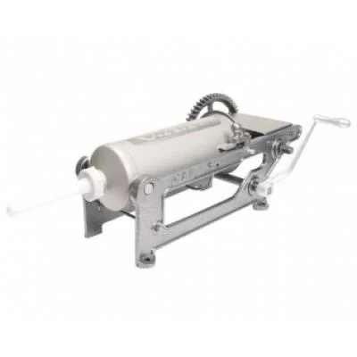 O ensacadeira manuel E-8 inox é um equipamento indicado para uso em: açougues. Detalhes construtivos Tubo de aço inox com parede de 2,0 mm . Engrenagens de aço que possibilitam ensacar massa gelada. Sistema de redução equilibrado, proporcionando movimentos leves ao operador. Capacidade para 8 litros de massa na versão E-8. CAPACIDADE APROX. DE MOAGEM PICADOR 106C Para massa mortadela: até 700 kg/h em disco de 3 mm. Para massa linguiça: até 1.200kg/h em disco de 8mm.APA / Built in stainless steel. Construída en acero inoxidable. CASE/ CAPA Construída em aço inox. CARACTERÍSTICAS TÉCNICAS / TECHNICAL CHARACTERISTICS / CARACTERISTICAS TECNICAS BANDEJA / Construída em aço inox. Built in stainless steel. Construída en acero inoxidable. TRAY / BANDEJA REDUTOR / Com 4 engrenagens helicoidais, extremamente resistentes e silenciosas, trabalhando imersas em banho de óleo, proporcionando grande durabilidade. With 4 helicoidal-cogwheels, extremely resistant and noiseless, operating in oil-bath, ensuring a high durability. Con 4 engrenajes helicoidales, extremamente resistentes y silenciosas, trabajando imersas en baño de aceite proporcionando grán durabilidad. REDUCER / REDUCTOR LUBRIFICAÇÃO / O carter é blindado (não sofre vazamento); troca de óleo após 3200 horas de uso na moagem de carne. The oil-case is shielded (there is no leakage); the oil change is made after 3200 hours of work during the meat micing. El carter es blindado (no sufre vazamento); cambiar el aceite después de 3200 horas de uso en molienda de carne. LUBRICATION / LUBRIFICACIÓN BOCAL, CARACOL, VOLANTE / Fabricado en ferro fundido e estanhado. Manufactured in cast iron and strongly nickled. Fabricado en hierro fundido y estañado. NOZZLE, SPIRAL-SHELL, FLY-WEEL / BOCAL, CARACOL, VOLANTE DISCOS / Em aço com tratamento térmico para maior durabilidade. Opcionales nos furos: 3 - 3,5 - 4 - 5 - 6 - 8 - 10 - 12 - 14mm; e 3 rim. Manufactured in steel with thermal treatment for a longer life span. Option in the holes: 3 - 3,5 - 4 - 5 - 6 - 8 - 10 - 12 - 14 and 3 rim. Fabricada en acero, con tratamiento térmico para mayor durabilidad. Opcionales nos furos: 3 - 3,5 - 4 - 5 - 6 - 8 - 10 - 12 - 14mm y 3 rim. DISKS / DISCOS CRUZETAS / KNIFES Em aço CRV com tratamento térmico, permanecendo afiadas por muito tempo. In CRV steel with thermal treatment maintaining the blade sharper for a longer period of time. En acero CRV con tratamiento térmico, permaneciendo afiladas por mucho tiempo. Informações Adicionais Peso líquido (kg): 27 Peso bruto (kg): 32