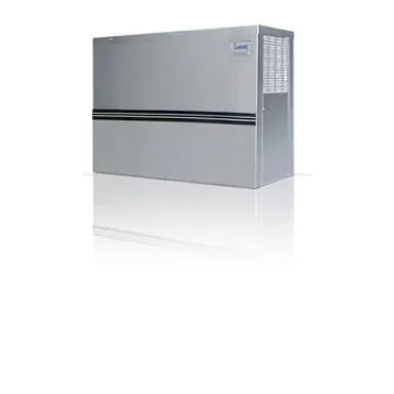 Gabinete aço inox com depósito opcional Dimensões (A x L x P )cm 68x94x35 Produção Kg/24h 162 (temp. ambiente 22°C) Produção Kg/24h 158 (temp. ambiente 27°C) Produção Kg/24h 144 (temp. ambiente 32°C) Produção Kg/24h 130 (temp. ambiente 37°C) Capacidade do depósito 140 a 250 kg Peso(kg) 61 Tensão(V) 220V HP Nominal 2 x 1/3