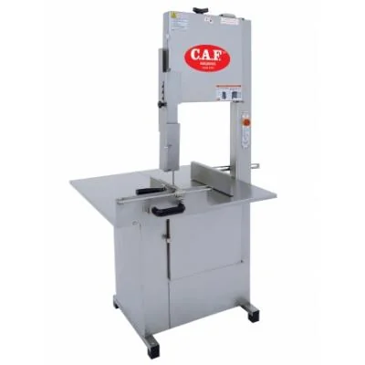 A serra de fitas para ossos CAF SFO 3.10 Tradicional inox/pintada NR 12 é um equipamento indicado para uso em: açougues, restaurantes, hotéis, peixarias e fazendas. Detalhes construtivos Cabeçote e gabinete construídos em chapa de aço carbono ou aço inox. A mesa é móvel, construída em aço inox 304. Polias e volantes em ferro fundido. Dispositivos de segurança (protetor de fita, empurrador e esticador) construídos em aço inox. Botão de emergência posicionado estrategicamente na frente do operador. Sistema de Segurança Instalado Botão duplo Liga / Desliga; Emergência; Botão Reset Chave de Segurança Magnética – Intertravando o equipamento quando as tampas, superior ou inferior, forem abertas com a máquina em uso; Chave Geral com trancamento manual – Lock-Out / Tag-Out; Interface de Segurança. Proteções Mecânicas Encosto Protetor da Lâmina: É uma canaleta regulável deslizante que enclausura o perímetro da lâmina da serra na região do corte,liberando apenas a área mínima de fita serrilhada para operação; Empurrador Vertical: Empurrador,com movimento pendular em relação à serra,serve para guiar e empurrar a carne e impedir o acesso da mão à área de corte; Limitador de Fatias: Localizado na mesa fixa da serra, é uma guia regulável paralela à serra fita utilizada para limitar a espessura do corte da carne; Empurrador Lateral: Dispositivo manual para empurrar a carne lateralmente contra a guia regulável, e perpendicularmente à serra fita,para corte de peças pequenas ou para finalização do corte da carne; Mesa Móvel: Tem uma guia que permite o apoio da carne na mesa e seu movimento de corte. Observação Todo motor monofásico de 50hz é fornecido em uma única voltagem, ou seja, 220v. CAPACIDADE APROX. DE MOAGEM PICADOR 106C Para massa mortadela: até 700 kg/h em disco de 3 mm. Para massa linguiça: até 1.200kg/h em disco de 8mm.APA / Built in stainless steel. Construída en acero inoxidable. CASE/ CAPA Construída em aço inox. CARACTERÍSTICAS TÉCNICAS / TECHNICAL CHARACTERISTICS / CARACTERISTICAS TECNICAS BANDEJA / Construída em aço inox. Built in stainless steel. Construída en acero inoxidable. TRAY / BANDEJA REDUTOR / Com 4 engrenagens helicoidais, extremamente resistentes e silenciosas, trabalhando imersas em banho de óleo, proporcionando grande durabilidade. With 4 helicoidal-cogwheels, extremely resistant and noiseless, operating in oil-bath, ensuring a high durability. Con 4 engrenajes helicoidales, extremamente resistentes y silenciosas, trabajando imersas en baño de aceite proporcionando grán durabilidad. REDUCER / REDUCTOR LUBRIFICAÇÃO / O carter é blindado (não sofre vazamento); troca de óleo após 3200 horas de uso na moagem de carne. The oil-case is shielded (there is no leakage); the oil change is made after 3200 hours of work during the meat micing. El carter es blindado (no sufre vazamento); cambiar el aceite después de 3200 horas de uso en molienda de carne. LUBRICATION / LUBRIFICACIÓN BOCAL, CARACOL, VOLANTE / Fabricado en ferro fundido e estanhado. Manufactured in cast iron and strongly nickled. Fabricado en hierro fundido y estañado. NOZZLE, SPIRAL-SHELL, FLY-WEEL / BOCAL, CARACOL, VOLANTE DISCOS / Em aço com tratamento térmico para maior durabilidade. Opcionales nos furos: 3 - 3,5 - 4 - 5 - 6 - 8 - 10 - 12 - 14mm; e 3 rim. Manufactured in steel with thermal treatment for a longer life span. Option in the holes: 3 - 3,5 - 4 - 5 - 6 - 8 - 10 - 12 - 14 and 3 rim. Fabricada en acero, con tratamiento térmico para mayor durabilidad. Opcionales nos furos: 3 - 3,5 - 4 - 5 - 6 - 8 - 10 - 12 - 14mm y 3 rim. DISKS / DISCOS CRUZETAS / KNIFES Em aço CRV com tratamento térmico, permanecendo afiadas por muito tempo. In CRV steel with thermal treatment maintaining the blade sharper for a longer period of time. En acero CRV con tratamiento térmico, permaneciendo afiladas por mucho tiempo. Informações Adicionais Motor: 1,5 cv Fase: 1 ou 3 Voltagem: 110/220 ou 220/380 Hz: 50/60 Consumo de energia: 1,104 kw/h Comprimento de lâmina: 3.100 mm Altura até a mesa: 880 mm Espaço entre coluna e fita: 390 mm Espaço entre guia e mesa: 400 mm Mesa: 850 mm x 850 mm Comprimento: 950 mm Largura: 910 mm Altura: 1.850 mm Peso líquido: 108 kg Peso bruto: 138 kg Observação: Esta máquina está disponível em motor monofásico ou trifásico.