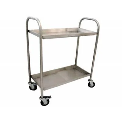 Carro de serviço tubular em aço inox AISI 304 com 2 bandejas de 35 cm cada. CR2T35 COMPRIMENTO (W) 790mm LARGURA (D) 550mm ALTURA (H) 930mm PESO BRUTO (Kg) 35.0 PESO LÍQUIDO (Kg) 27.5