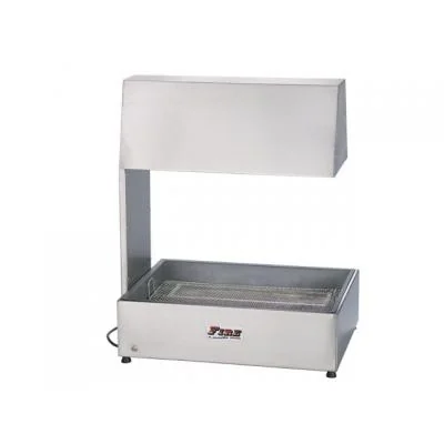 Utilizado para manter aquecidas as frituras, tais como: batata, polenta, mandioca e salgados em geral. Fabricado em aço inox escovado Utiliza lâmpadas de infra-vermelho para secagem de 250 ww Chave liga-desliga Pino e tomada normalizados e padronizados Tela para escorrimento do excesso de óleo Pés reguláveis Medida : 550 x 400 x 670mm 2 Lâmpadas 500 W 220v