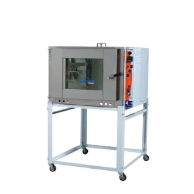 Fabricado em aço SAE 1020 revestido internamente com pintura alumínio (atóxica) e externamente com pintura epóxi branca. Possui a frente, porta e os suportes das bandejas fabricado em aço inox AISI 430. Sistema Turbo que através de uma hélice, circula o ar quente fazendo com que o pão asse uniforme. Baixo consumo de gás. Painel de fácil operação, com botões de acionamento para geral, motor e lâmpada. Controlador digital que emite uma alarme sonoro para avisar o término do tempo desejado e controla a temperatura desejada. Controla o tempo de vapor desejado. Luz para melhor visualização da câmara interna. Compatível com bandejas de 58 x 70cm e 40 x 60cm. Isolamento térmico em lã de rocha. Rodízios para facilitar a locomoção. Especificações Técnicas MOTOR: 1/4 CV TENSÃO: 110/220V PESO LÍQUIDO: Kg PESO BRUTO: Kg CONSUMO GLP: 0,9 Kg CONSUMO ELÉTRICO: 0,190 KW/h QUANTIDADE DE PÃES POR FORNADA: 150 QUANTIDADE DE ASSADEIRAS: 5 PRODUÇÃO DE PÃES/h: 450 a 500 DIMENSÕES: 1480 x 970 x 1320mm