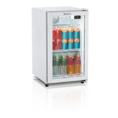 Refrigerador Vertical Conservação e Exposição de bebidas, frios e laticínios Refrigeração: Ar forçado com evaporador aletado Temperatura: 0º a +7ºC Degelo: Manual Controlador eletrônico com indicador de temperatura Revestimento Interno: Aço pré-pintado branco Revestimento Externo: Aço pré-pintado branco Iluminação interna LED Porta de vidro duplo temperado baixo emissivo Prateleiras aramadas 1 nível regulável + 1 estrado Pés niveladores Condensador estático, com ventilação natural Vidros sujeitos a condensação da umidade do ar Equipamento certificado conforme Portaria Inmetro nº 371/2009 Produto destinado para uso comercial * Imagens meramente ilustrativas. Imagens e informações sujeitas a alterações sem aviso prévio. ** Cores de acabamento e materiais sujeitos a variação de acordo com o lote de produção e/ou entre os materiais que compõem o produto (ex.: chapa, plástico,madeiras e etc.) Informações Técnicas Altura 850mm Profundidade 593mm Frente 480mm Consumo 3,8kW/dia Peso Líquido 39kg Classe ( 4 ) Capacidade Líquida 112 litros