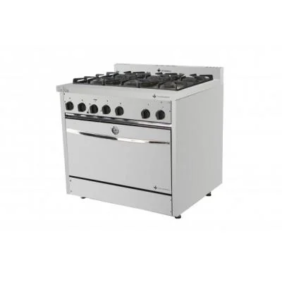 O Fogão a Gás Don Bidone FDB6F da Venâncio é ideal para quem gosta de cozinhar e precisa de uma cozinha com estrutura de alto nível. Feito para o trabalho profissional, o fogão traz as mais recentes tecnologias para o seu dia a dia. Ainda, devido ao seu alto desempenho, ele é apropriado para uma grande produção de comida e, graças ao revestimento externo em aço inoxidável é fácil garantir a resistência do fogão. Os 6 queimadores possuem grelhas em ferro fundido cinzento esmaltado, o que assegura a durabilidade, e você consegue cozinhar vários alimentos ao mesmo tempo. Se você ama cozinhar, é impossível não se encantar com o fogão Don Bidone 6 Bocas, pois só ele garante modernidade e segurança para a sua cozinha! Características do Produto Modelo: FDB6F Tipo de fogão: Piso Tipo: A gás Tipo de gás: GLP de baixa pressão Bocas: 06 Acendimento: Automático elétrico Material: Aço Inox Mesa: De aço inox com alto relevos Queimadores: 2 pequenos e 4 grandes Material dos queimadores: Em ferro fundido cinzento esmaltado Potência dos queimadores (watts): Pequenos: 1975 watts Grandes: 3175 watts Controle de temperatura: Registro dos queimadores superiores com 3 posições de temperatura Capacidade do forno: 159 litros Revestimento interno: Do forno: Esmaltado na cor azul Grelha: Do forno: Em aço SAE 1020 cromada Porta do forno: Isolada com lã de rocha; Com sistema de abertura através de molas Forno Autolimpante: Não Comando de temperatura do forno: Válvula de segurança termostática Bandeja coletora de resíduos: Em aço inoxidável 430 escovado Puxador: Aço SAE 1020 cromado Pés: Em aço inoxidável 430 Com regulagem de altura Sapata: Emborrachada Evita deslizamentos Grill: Não Classificação Energética: Não possui classificação energética Voltagem: Bivolt Consumo de gás: 2,110 kg/h Peso: 137 kg Largura interna do forno: 83,5 cm Altura interna do forno: 36 cm Profundidade interna do forno: 55 cm Largura: 92 cm Altura: 95 cm Profundidade: 80 cm