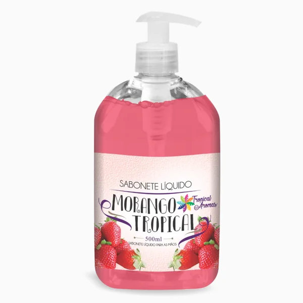 Sabonete Liquido Morango 500ml - Tropical Aromas. Suave, hidratante e com textura de pérola, Sabonete Liquido Tropical Aromas Morango sua formulação concentrada limpa sem agredir a pele, mantendo-a macia, hidratada e com agradável perfume! O Sabonete Liquido Morango Tropical Aromas possui pH fisiológico, o que permite uma limpeza sem ressecar. Seus ativos ainda ajudam na hidratação e proteção da pele para um toque sedoso mais duradouro. Tudo isso aliado a um aroma confortável e renovador. Como Usar: Aplique uma pequena quantidade de sabonete líquido diretamente sobre as mãos, com movimentos circulares e enxágue. Para uma limpeza ideal da pele, é melhor caprichar na massagem do que usar uma quantidade alta de sabonete para evitar o desperdício. Quanto mais você espalhar com suavidade a fórmula, mais ela vai conseguir remover as impurezas profundamente. Quando acabar, use o Sabonete Liquido Tropical Aromas Morango para maior economia.