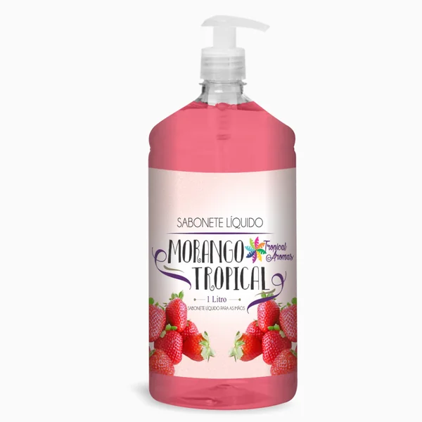 Sabonete líquido Morango 1lt - Tropical Aromas Suave, hidratante o Sabonete líquido Tropical Aromas Morango c/ valvulasua formulação concentrada limpa sem agredir a pele, mantendo-a macia, hidratada e com agradável perfume! O Sabonete líquido Tropical Aromas Morango possui pH fisiológico, o que permite uma limpeza sem ressecar. Seus ativos ainda ajudam na hidratação e proteção da pele para um toque sedoso mais duradouro. Tudo isso aliado a um aroma confortável e renovador. Como Usar: Aplique uma pequena quantidade de sabonete líquido diretamente sobre a as mãos, com movimentos circulares e enxágue. Para uma limpeza ideal da é melhor caprichar na massagem do que usar uma quantidade alta de sabonete para evitar o desperdício. Quando acabar, use o Sabonete líquido Tropical Aromas Morango c/ valvulaREFIL para maior economia.