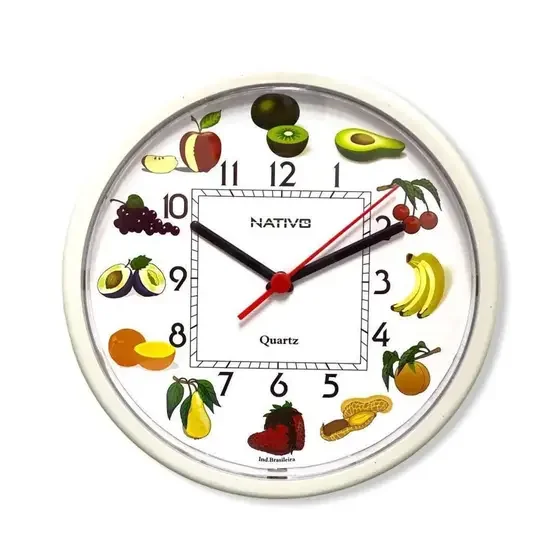 Relógio de Parede Educativo Frutas 21,5 cm Redondo Nativo