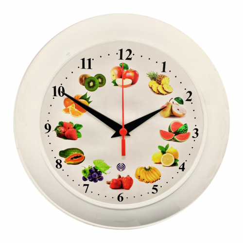 RELÓGIO CLASSIC FRUTAS - BCO Ref:PLA-501 - RELÓGIOS CLASSIC 30CM RELÓGIO EM PP, LENTE EM PS CRISTAL, MECANISMO TIC-TAC E IMAGEM EM PAPEL COCHÊ 240 GRAMAS