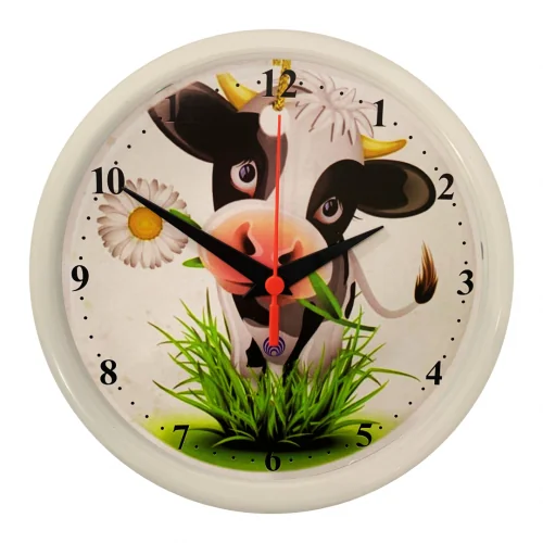 RELÓGIO VAQUINHA - BCO Ref:PLA-120 - RELÓGIOS COZINHA 25CM RELÓGIO EM PP, LENTE EM PS CRISTAL, MECANISMO TIC-TAC E IMAGEM EM PAPEL COCHÊ 240 GRAMAS