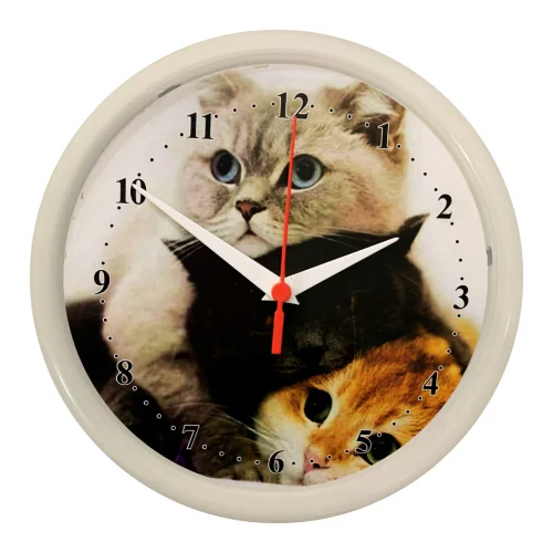 RELÓGIO GATOS - BCO Ref:PLA-133 - RELÓGIOS COZINHA 25CM RELÓGIO EM PP, LENTE EM PS CRISTAL, MECANISMO TIC-TAC E IMAGEM EM PAPEL COCHÊ 240 GRAMAS