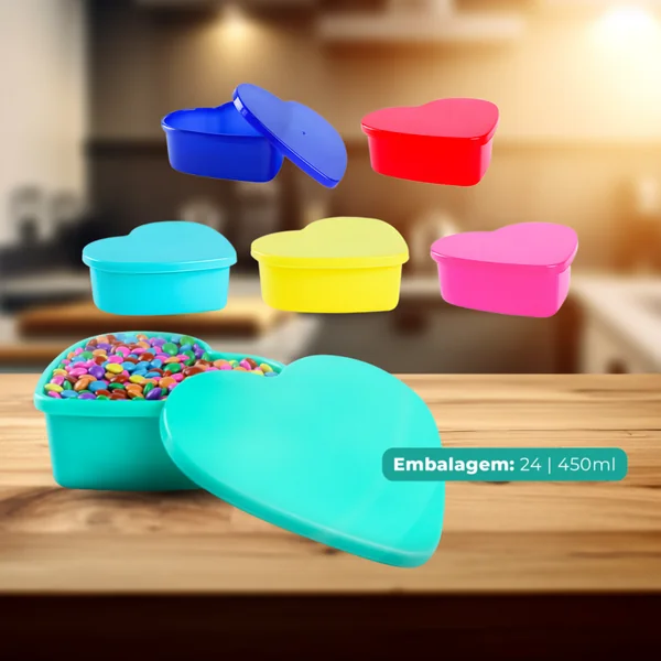 Pote Coração 450ml Plásticos Ideal – Charmoso, Resistente e Perfeito para Presentes ou Sobremesas