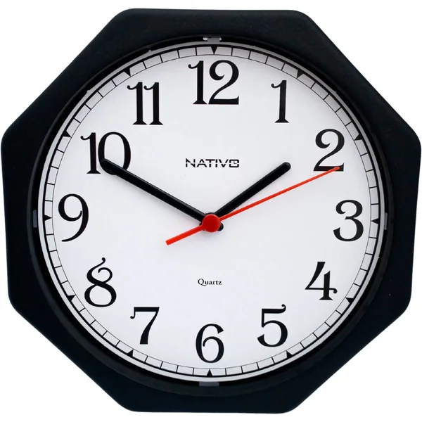 Relógio de Parede Octogonal 24 Horas 22cm - Nativo