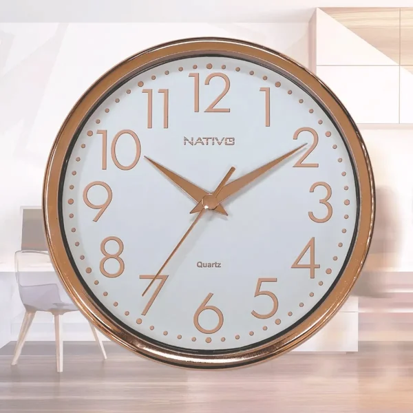 Relógio De Parede Rose Gold Nativo - Decorativo Moderno Ponteiro (Branco)
