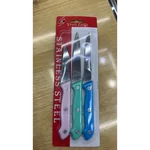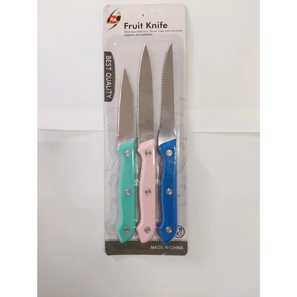 Conjunto de facas de corte EM3940, fabricado com material de alta qualidade: aço inoxidável e cabo plástico resistente. Ideal para diversas tarefas na cozinha. Tamanho aproximado de 22x2cm. Informações do Produto: •Material: Aço inoxidável, cabo plástico •Tamanho: Aprox. 22x2cm