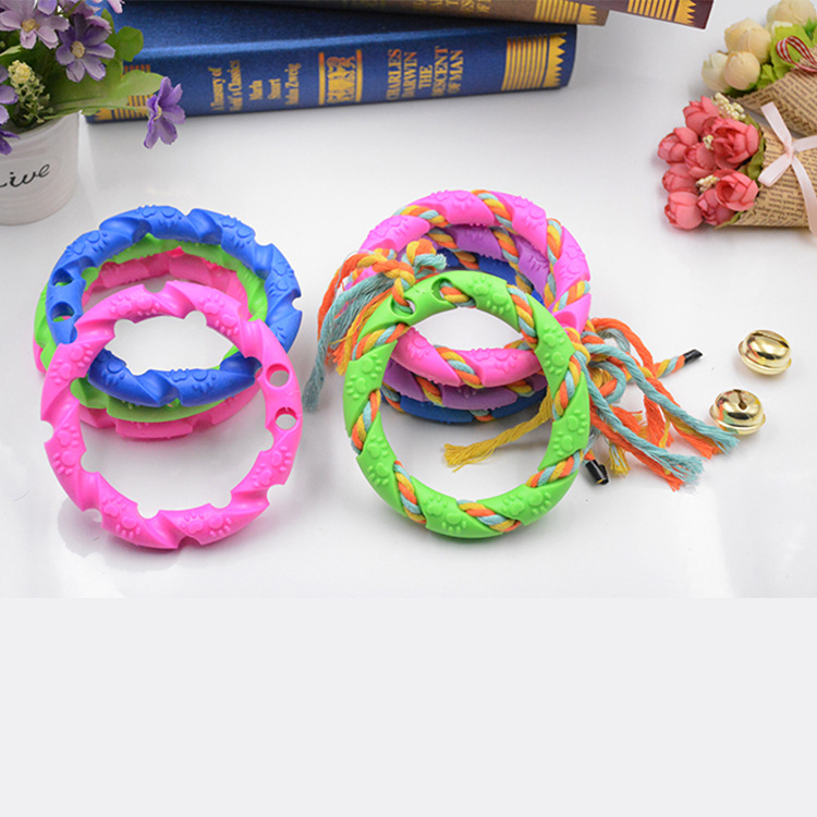 Brinquedo de Borracha em Forma de Círculo com Corda ZN 0853 é perfeito para brincadeiras de puxar, jogar e mastigar. Feito com corda de algodão durável, este brinquedo é ideal para a saúde dental do seu pet, limpando dentes e massageando gengivas. As cores vibrantes tornam-no seguro e divertido para filhotes e cães de médio porte.
