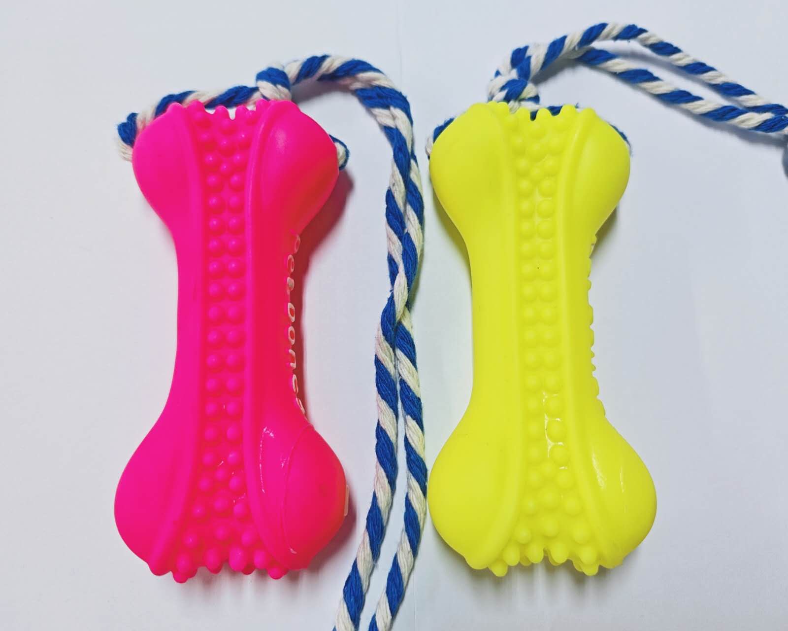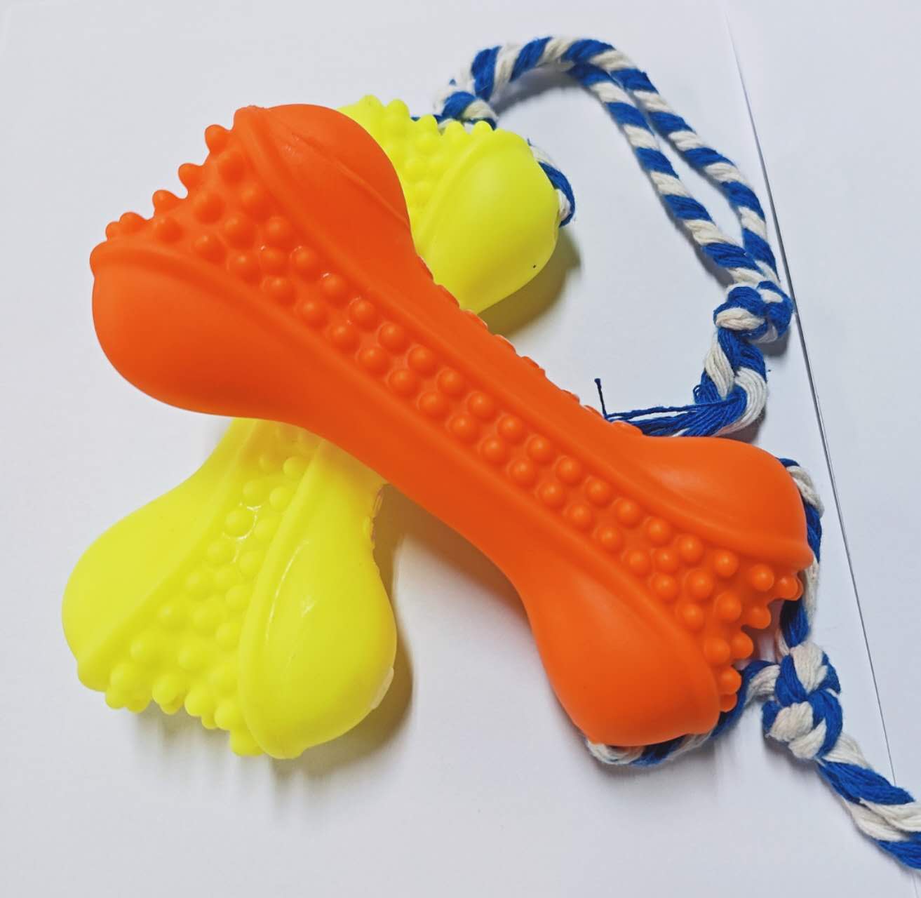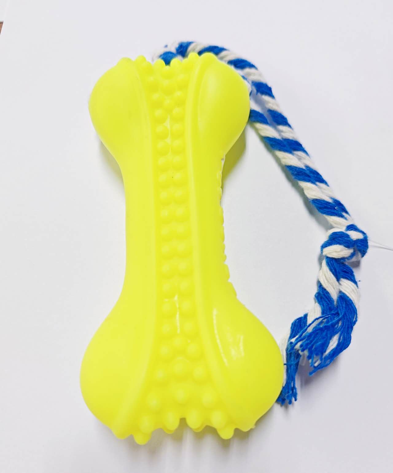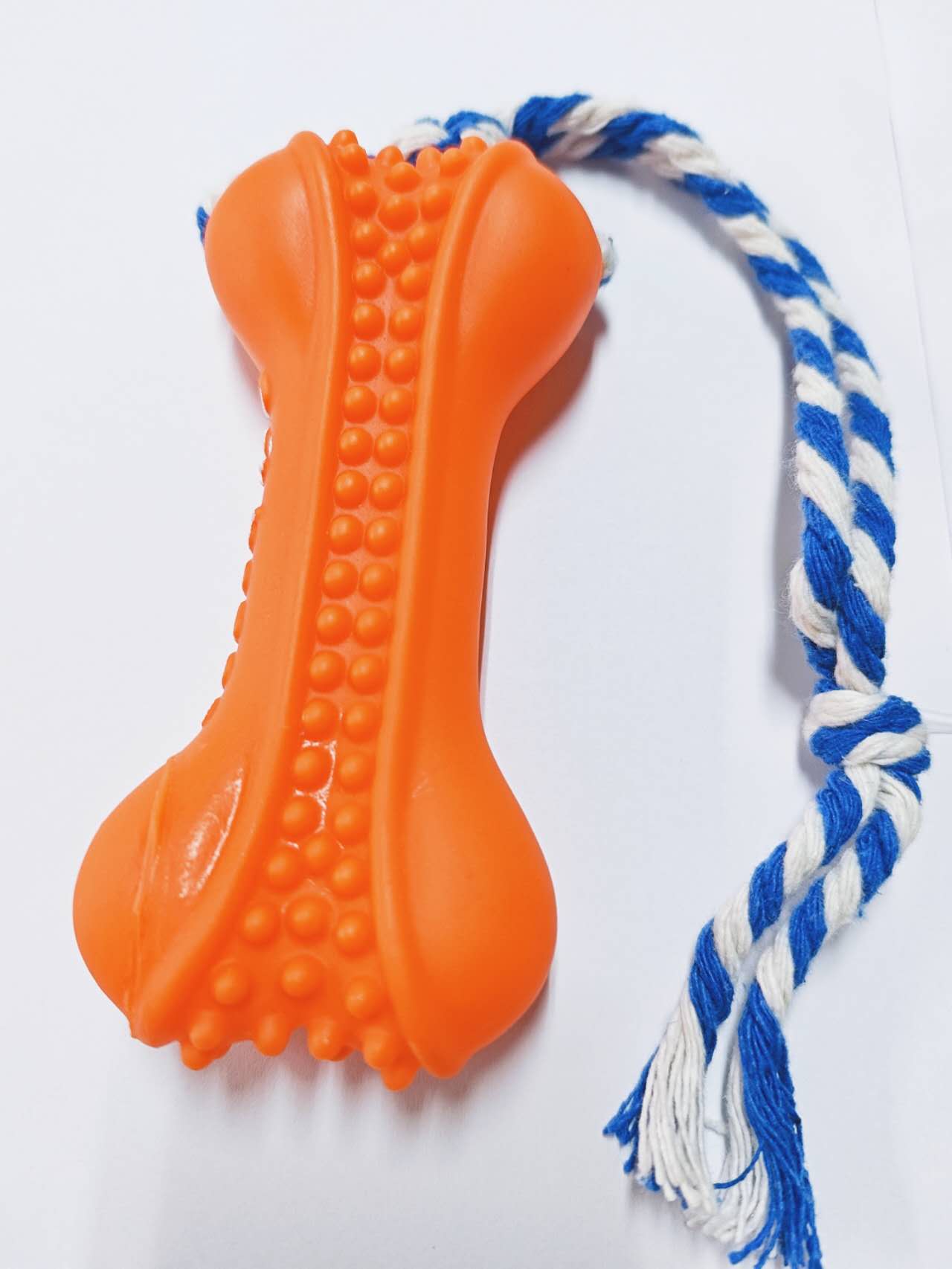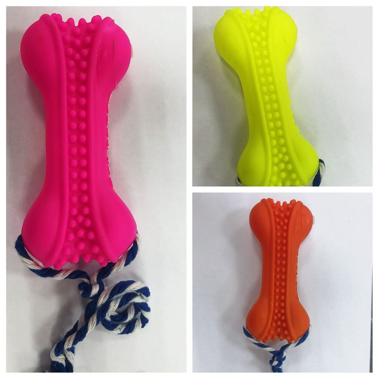 Ideal para mastigar e brincar, este Brinquedo de Borracha em Formato de Osso com Corda é perfeito para jogos de puxar, lançar e morder, além de promover a saúde dental do seu pet. Feito com fibras naturais de algodão, ajuda a combater a placa e prevenir doenças gengivais. Cores vibrantes e seguras para filhotes e cães de porte médio.