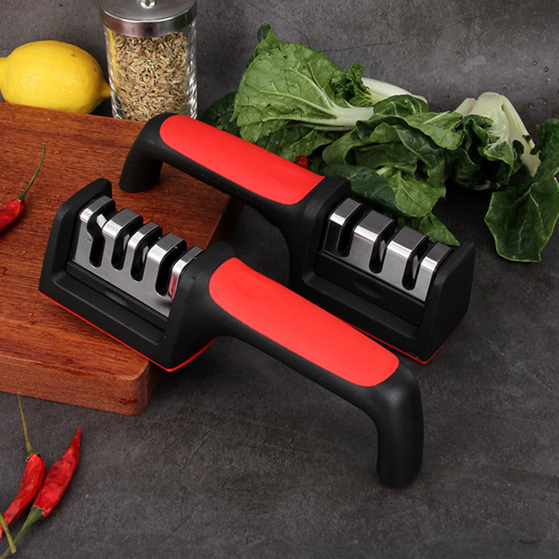 Mantenha suas facas e tesouras afiadas com este afiador de três estágios para facas e um estágio para tesouras. Simples de usar, proporciona precisão e agilidade para o dia a dia, festas e churrascos.