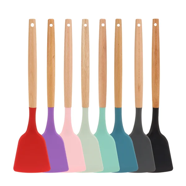 A espátula culinária perfeita para diversos tipos de preparo. Feita com silicone resistente a altas temperaturas de até 240°C, é ideal para proteger suas panelas e frigideiras de arranhões. Informações do Produto: •Cor: Cinza, Verde, Vermelha •Tamanho: 31,5 cm (comprimento) x 7,5 cm (largura) •Contém: 01 espátula •Composição: Silicone e Madeira •Validade: Indeterminado (Produto não perecível) •Resistente a odores e descoloração •Fácil de higienizar