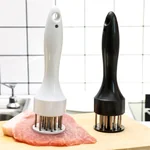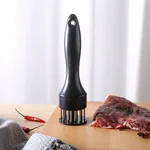 Amacie suas carnes com eficiência usando o Amaciador de Carne, que reduz o tempo de cozimento em até 40% ao criar canais de calor para distribuição uniforme. Informações do Produto: • Quantidade: 1 peça • Material: Plástico e agulha de aço inox • Tamanho: 20 cm x 5 cm • Cor: Preto • Benefícios: Minimiza encolhimento da carne e facilita o cozimento • Fácil de limpar
