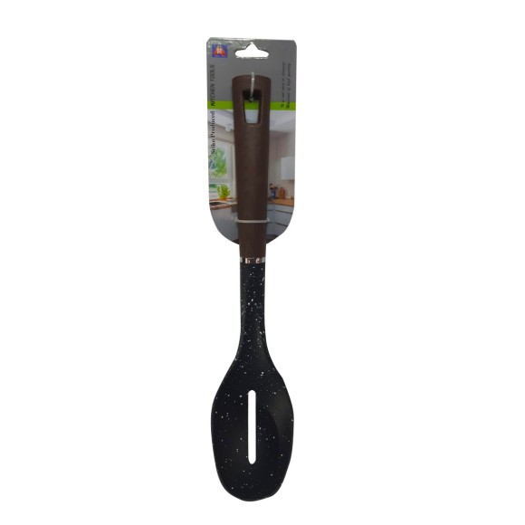 A Escumadeira de 33cm é a escolha ideal para tornar suas tarefas na cozinha mais práticas e eficientes. Fabricada com materiais de alta qualidade, apresenta uma composição resistente de nylon e madeira, proporcionando durabilidade e segurança durante o uso. Seu design sofisticado em preto e marrom agrega estilo à sua cozinha.