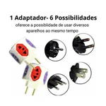 Adaptador Benjamim Redondo 6 Tomadas Com Fusível
