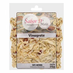 VINAGRETE DESIDRATADO: SABOR E VERSATILIDADE PARA CARNES E SALADAS O Vinagrete Desidratado é um mix de ervas e especiarias extremamente versátil, capaz de transformar pratos simples em receitas surpreendentes. Sua combinação equilibrada realça o sabor de carnes, sopas e grelhados, proporcionando um toque especial ao dia a dia. Pode ser utilizado diretamente como tempero para carnes e sopas ou hidratado em azeite e vinagre para preparar deliciosos molhos para saladas e carnes grelhadas, garantindo um aroma irresistível e um sabor marcante. Ingredientes: Alho em flocos desidratado, salsa, tomate e pimentão-vermelho.