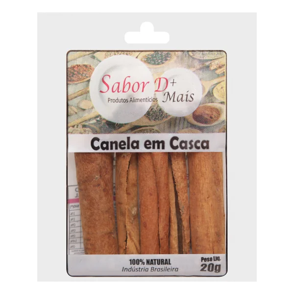 CANELA EM CASCA: AROMA INTENSO PARA CHÁS E RECEITAS DOCES E SALGADAS A canela em casca é obtida a partir do tronco da caneleira, uma árvore cujos galhos secos liberam cascas aromáticas de cor marrom-avermelhada. A principal diferença entre a canela em pau e a versão em pó é que a primeira concentra ainda mais sabor e aroma. Muito versátil, a canela pode ser utilizada em receitas doces como arroz doce, canjica, mousses, bolos e mingaus, além de ser um ingrediente especial para pães e pratos salgados. Na sua forma natural, é amplamente usada no chá de canela com gengibre, trazendo benefícios para o bem-estar e a saúde. Ingredientes: Canela em casca.