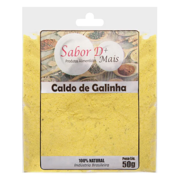 CALDO DE GALINHA EM PÓ: SABOR E PRATICIDADE PARA SUAS RECEITAS O caldo de galinha em pó é a escolha perfeita para quem busca sabor intenso e concentrado com mais praticidade na cozinha. Ele mantém o mesmo gosto delicioso dos caldos em cubo, mas sem a necessidade de ralar ou dissolver previamente, facilitando o preparo. Versátil e aromático, é ideal para sopas, risotos, molhos, arroz, refogados e carnes, garantindo um toque especial e autêntico às receitas. Substitua o caldo em cubo pelo caldo de galinha em pó e torne seus pratos ainda mais saborosos e fáceis de preparar! Ingredientes: Sal, creme de milho, açúcar, extrato de levedura, aipo, salsa, cenoura, cebola, alho, pimenta-branca, óleo de soja, glutamato monossódico, corante caramelo, corante natural de cúrcuma e aroma natural de galinha.