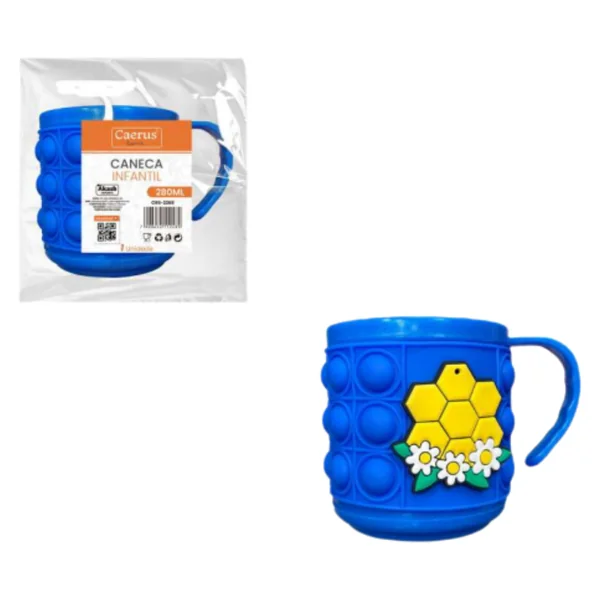 Caneca Infantil 280 ml Akash Imports CRS-2268 Plástica Colorida e Resistente para Crianças