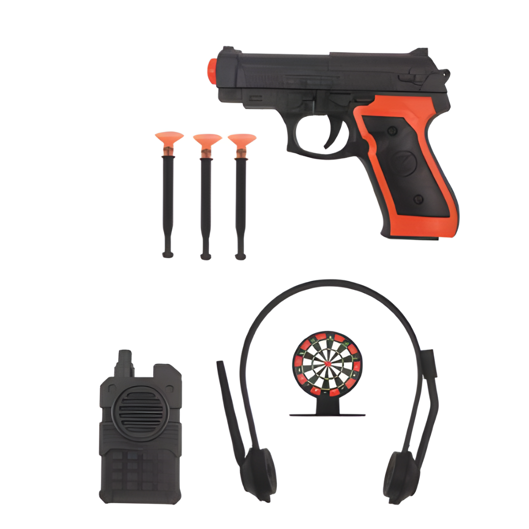 Quantidade/Caixa: 144 Com acessórios | Pistola lança dardos | 7 peças Na cartela | DIM: 37x21x4 cm