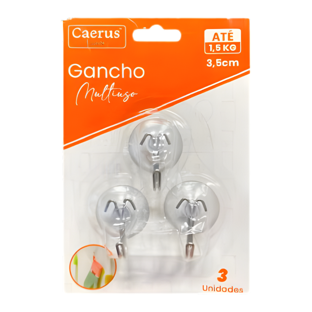 Quantidade/Caixa: 120 De plástico e metal | Na cartela 3 unidades | Suporta até 1,5 kg Gancho de 3,5 cm | DIM: 15x10 cm