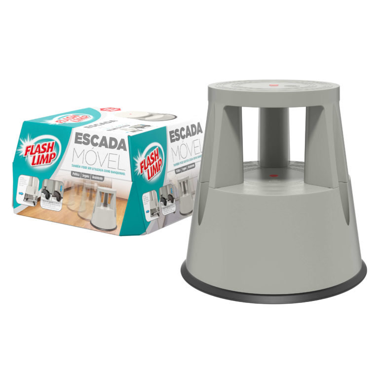 A Escada Móvel da Flash Limp é composta por dois degraus. O maior deles possui a altura máxima de 42 cm, o que ajuda nas tarefas de casa e também no trabalho. Em sua base, a escada possui rodízios, que permitem que ela se movimente sem que o usuário precise abaixar para carregá-la. Seu sistema de segurança trava a escada ao pisar, garantindo que ela não se mova e evitando acidentes. Produzida em polipropileno de alta qualidade, resiste a até 150kg e não enferruja. A escada também pode ser utilizada como banquinho.