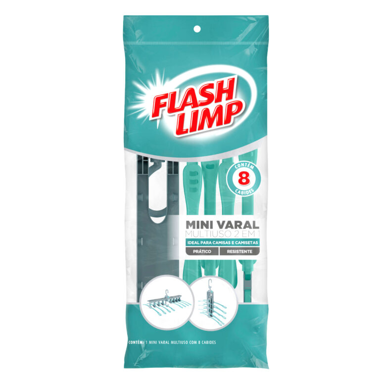 Com o Mini Varal Multiuso 2 em 1 da Flash Limp, você vai mudar seu modo de secar camisas e camisetas. Ele evita que as peças fiquem deformadas e com marcas de prendedores, além de ocupar menos espaço em comparação com varais tradicionais. Mas não é só isso. Os 8 cabides, dividem-se ao meio com acionamento individual por botão, liberando a peça de roupa com total praticidade. Quando não estiver em uso, você pode flexionar a base do Mini Varal, assim ele ocupará pouquíssimo espaço em sua área de serviço.